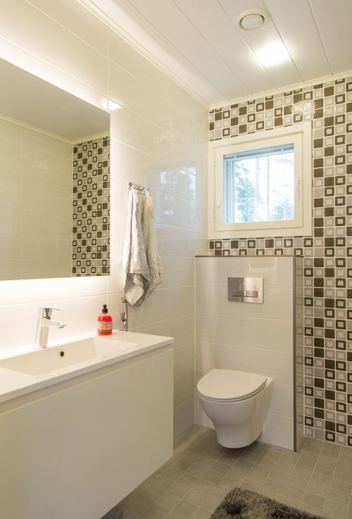 WC-tiloissa suosimme hyvää yleisvaloa sekä riittävän valovoimaista peilivaloa.