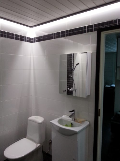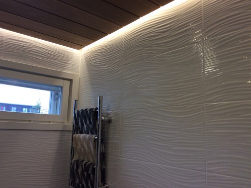 -Alaslaskun laidoille epäsuoravalaistus korostamaan laatoitusta?
